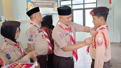 Wabup H. Bahsanuddin Sematkan TISKA kepada Kontingen Pramuka Tanah Bumbu