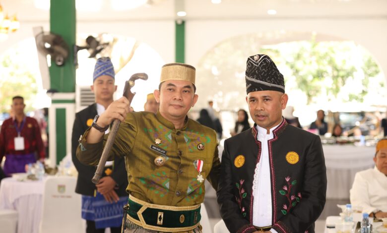 Komunitas Bugis Mantra Bumi juga menyerahkan senjata pusaka keris Tappi Lamba Pitu La Tenri Beta kepada Bang Arul, menambah kesan sakral pada momen tersebut.