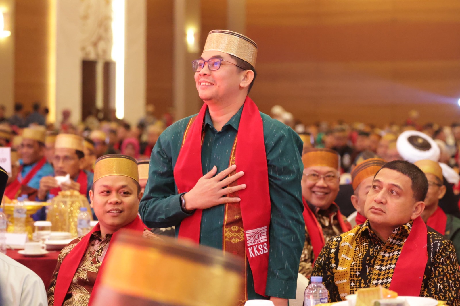 Bang Arul yang menjabat Bupati Tanah Bumbu 2025-2030, Provinsi Kalimantan Selatan hadir mengenakan baju berwarna hijau. Ia memberikan ucapan selamat atas dikukuhkannya kepengurusan BPP KKSS periode 2025-2030.