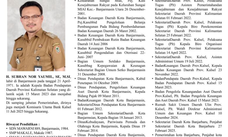 Kenaikan tren Pendapatan Asli Daerah (PAD) sejak tahun 2021 tak lepas dari kepemimpinan Kepala Bapenda Kalsel, Subhan Noor Yaumil, yang dinilai visioner, cepat merespons dinamika, dan mampu menggerakkan seluruh unit kerja.