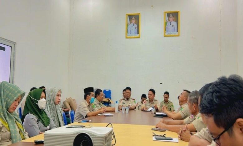 Kepala Pelaksana BPBD Tanbu Sulhadi memimpin rapat yang di hadiri seluruh pejabat dan staf BPBD, serta TRC-PB, Selasa (4/7/2023) di Batulicin.