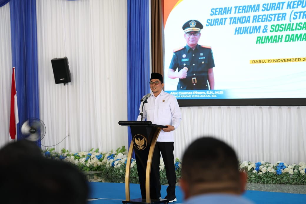 Pernyataan tersebut disampaikan Bupati Andi Rudi Latif dalam acara serah terima surat keputusan (SK) dan Surat Tanda Register (STR) Pos Bantuan Hukum (Posbakum) serta Sosialisasi Aksi Rumah Damai Kabupaten Tanah Bumbu Tahun 2025, yang berlangsung di Pendopo Kantor Bupati, Batulicin, Rabu (19/11/2025).