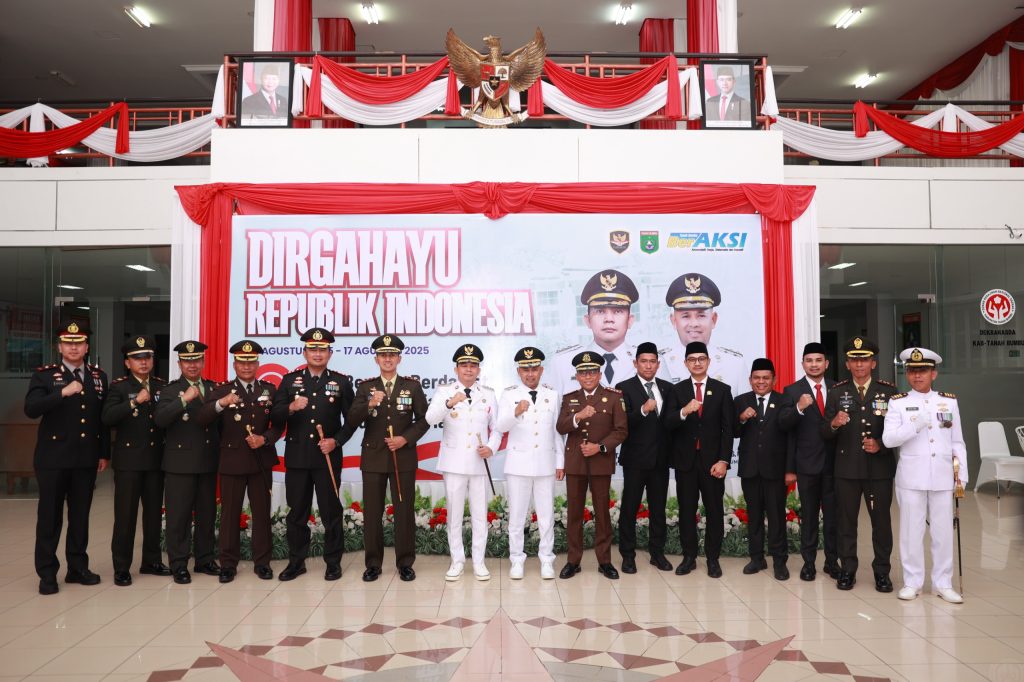 PESISIR MEDIA.COM, BATULICIN – Pemerintah Kabupaten Tanah Bumbu menggelar Upacara Detik-detik Proklamasi dalam rangka peringatan HUT ke-80 Kemerdekaan Republik Indonesia, Minggu (17/8/2025), di halaman Kantor Bupati, Batulicin.