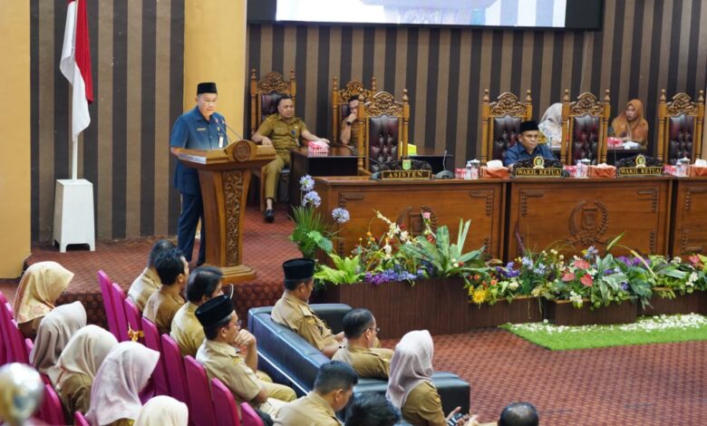 PESISIR MEDIA.COM, BATULICIN – Asisten Bidang Perekonomian dan Pembangunan Eriyanto Rais dalam hal ini mewakili Bupati Tanah Bumbu H. M Zairullah Azhar menyampaikan jawaban pihak eksekutif atas pandangan umum Fraksi Dewan Perwakilan Rakyat Daerah (DPRD) Kabupaten Tanah Bumbu.