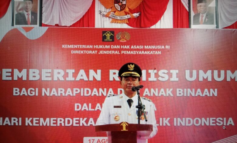 BATULICIN – Bupati Tanah Bumbu (Tanbu) Zairullah Azhar menyerahkan sertifikat remisi kepada 254 Warga Binaan Pemasyarakatan (WBP) Lapas Kelas III Batulicin. Pada peringatan HUT Kemerdekaan Republik Indonesia (RI) Ke-78, Kamis (17/8/2023). Turut mendampingi pada penyerahan sertifikat remisi, Kepala Lapas Batulicin Bambang Hari Widodo, Ketua DPRD Tanbu Andrean Atma Maulani, dan Forkopimda.