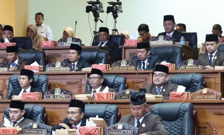 PESISIR MEDIA.COM, BATULICIN – DPRD Kabupaten Tanah Bumbu menggelar Rapat Paripurna dalam rangka Pengumuman Pengusulan Pengangkatan Bupati dan Wakil Bupati Tanah Bumbu Terpilih tahun 2025-2030. Senin (13/01/2025) bertempat di Gedung DPRD Tanbu.