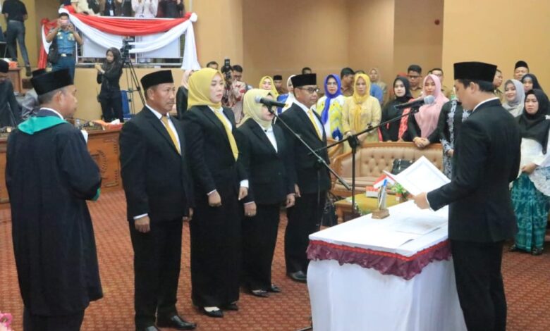 Anggota DPRD PAW atas nama Abdul Rasyid, Sujarwati, Nur Hidayati, dan Muhammad Sairi, di ambil sumpahnya berdasarkan keyakinannya yakni Agama Islam di atas Kitab suci Alquran dari Rohaniawan Kementerian Agama Tanah Bumbu.