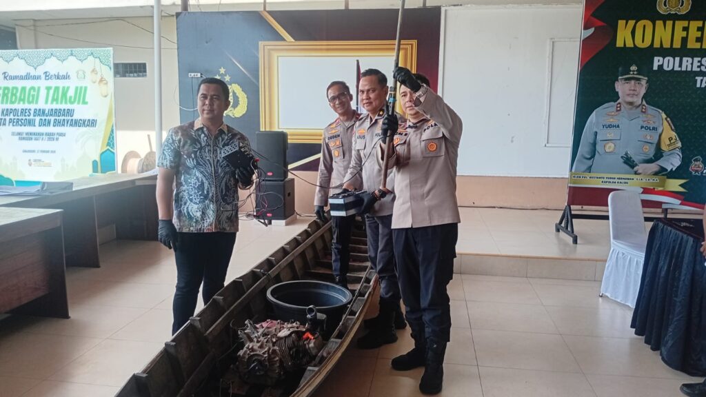 “Aktivitas pencarian ikan dengan alat setrum atau listrik, dalam undang-undang itu dilarang. Kemudian kami amankan pelaku, sarana air, sarana setrum berikut alat dan hasil (tangkapan) ikannya,” kata Kapolsek Beruntung Baru, Ipda Deden Aprianto Lesmana dalam jumpa pers di Aula Joglo Mapolres Banjarbaru, Kamis (9/4/2026).