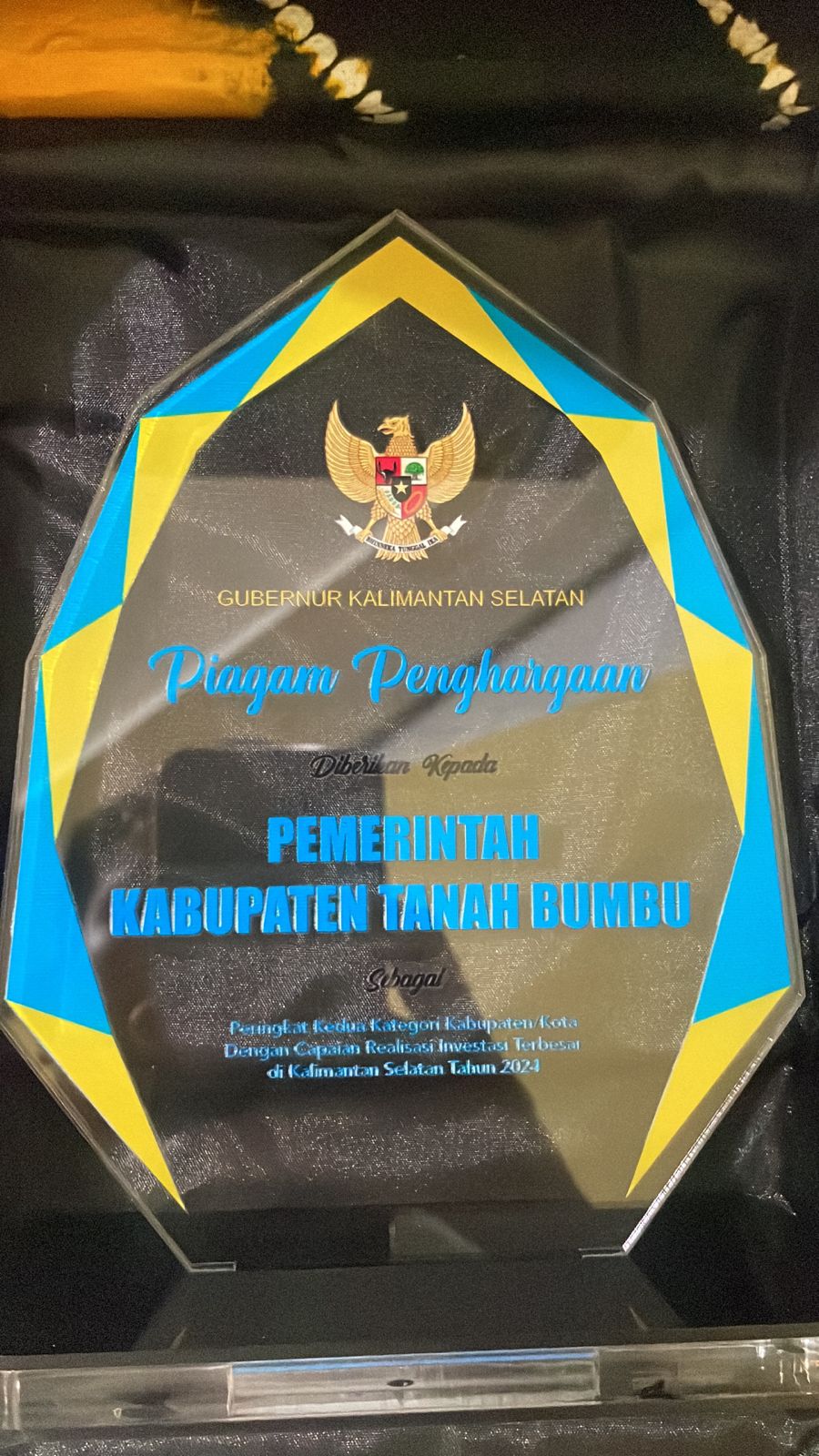 PESISIR MEDIA.COM, BATULICIN – Bupati Tanah Bumbu, Andi Rudi Latif, menerima penghargaan terbaik ke-2 atas capaian realisasi investasi terbesar di Kalimantan Selatan Tahun 2024. Penghargaan diserahkan langsung oleh Gubernur Kalsel, H. Muhidin, pada puncak peringatan Hari Jadi ke-75 Provinsi Kalimantan Selatan di Banjarbaru, Kamis (14/8/2025).