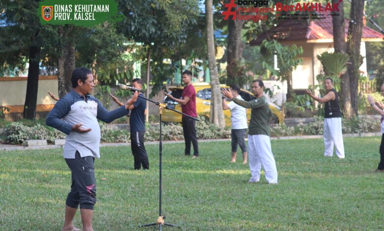 Pesisirmedia.com, Banjarbaru – Setiap hari rabu Dishut Kalsel rutin gelar latihan Karate bersama sebelum memulai aktifitas kantor untuk menjaga kesehatan dan kebugaran tubuh, kegiatan latihan karate bersama tersebut diikuti seluruh pegawai Dinas Kehutanan Prov Kalsel dan Polisi Kehutanan lingkup Dishut Kalsel di halaman terbuka Kantor. Rabu, (18/8).