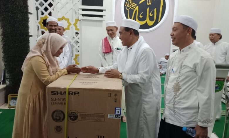 Undian hadiah yang ada kegiatan Kamis malam (07/09/2023) di Masjid Darul Azhar seperti sejumlah kipas angin ,maupun TV analog serta hadiah utama unit Kulkas.