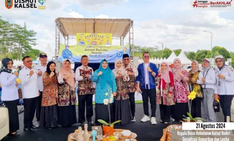 PESISIR MEDIA.COM, Banjarbaru – Kepala Dinas Kehutanan Kalimantan Selatan Fathimatuzzahra turut hadir dalam acara Sosialisasi Gerakan Memasyarakatkan Makan Ikan (Gemarikan) dan Lomba Masak Serba Ikan Tingkat Provinsi Kalimantan Selatan yang digelar di halaman Kantor Gubernur Kalsel. Rabu (21/08) Acara ini dihadiri Gubernur Kalsel diwakili Asisten 3 Pemprov Kalsel, Ketua Penggerak PKK Kalsel, dan Kepala SKPD Lingkup Pemprov Kalsel.