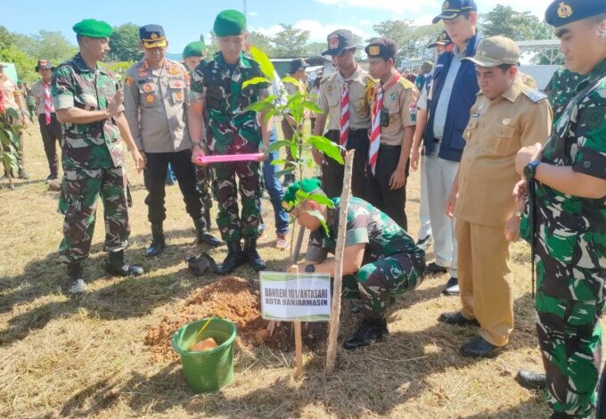 BANJARMASIN – Dalam Upaya mendukung kelestarian alam dan gerakan penghijauan, PT Jasa Raharja Cabang Kalimantan Selatan (Kalsel) dan Korem 101/Antasari, menggelar penanaman pohon dan buah di kawasan komplek Pamen Korem 101 Antasari Banjarmasin, Selasa (11/7).