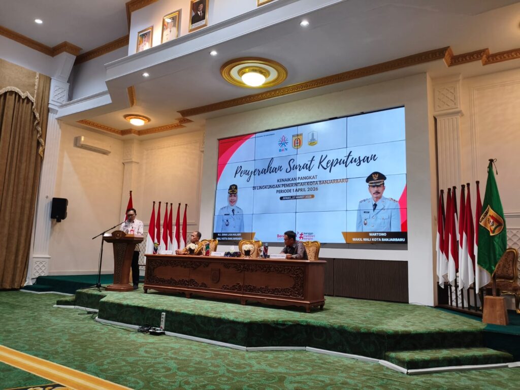 PESISIR MEDIA.COM – BANJARBARU – Pemerintah Kota Banjarbaru melalui Badan Kepegawaian dan Pengembangan Sumber Daya Manusia (BKPSDM) Kota Banjarbaru menyerahkan Surat Keputusan (SK) Kenaikan Pangkat untuk periode 1 April 2026 kepada 177 orang ASN di lingkungan Pemerintah Kota Banjarbaru.