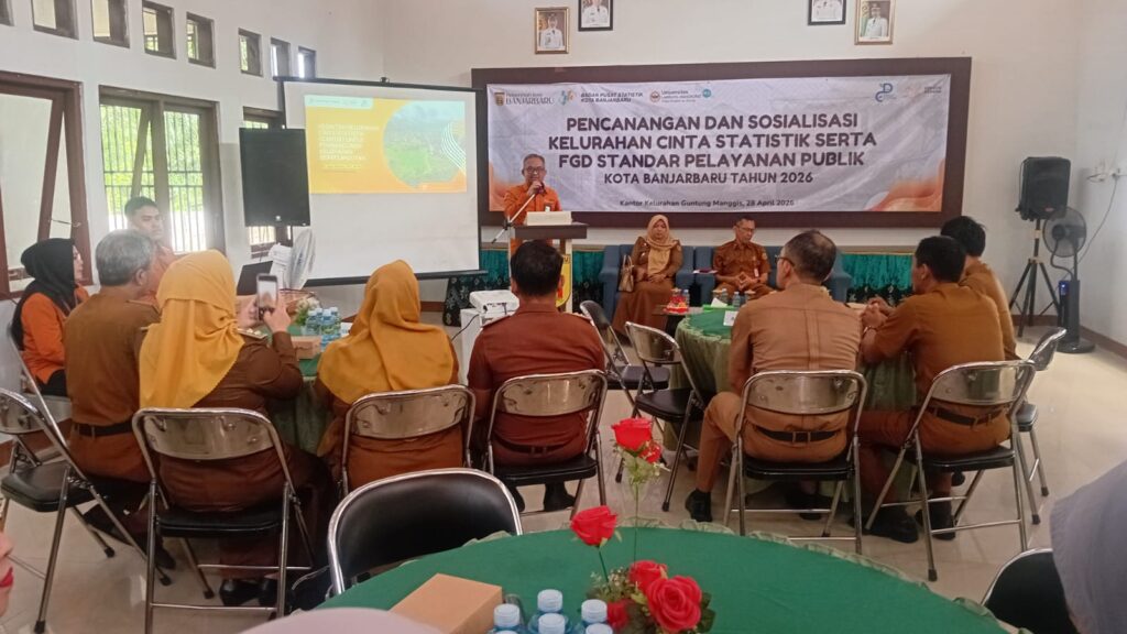 Kegiatan yang digelar Selasa, (28/4/2026) di Aula Kelurahan Guntung Manggis dihadiri puluhan peserta perwakilan dari perangkat kelurahan se Kecamatan Landasan Ulin juga dihadiri mitra BPS dari berbagai unsur, Camat Landasan Ulin, Lurah Guntung Manggis dan perwakilan BPS Provinsi Kalimantan Selatan juga hadir kepala BPS Kota Banjarbaru Dr. Agus Muslim beserta jajaran.