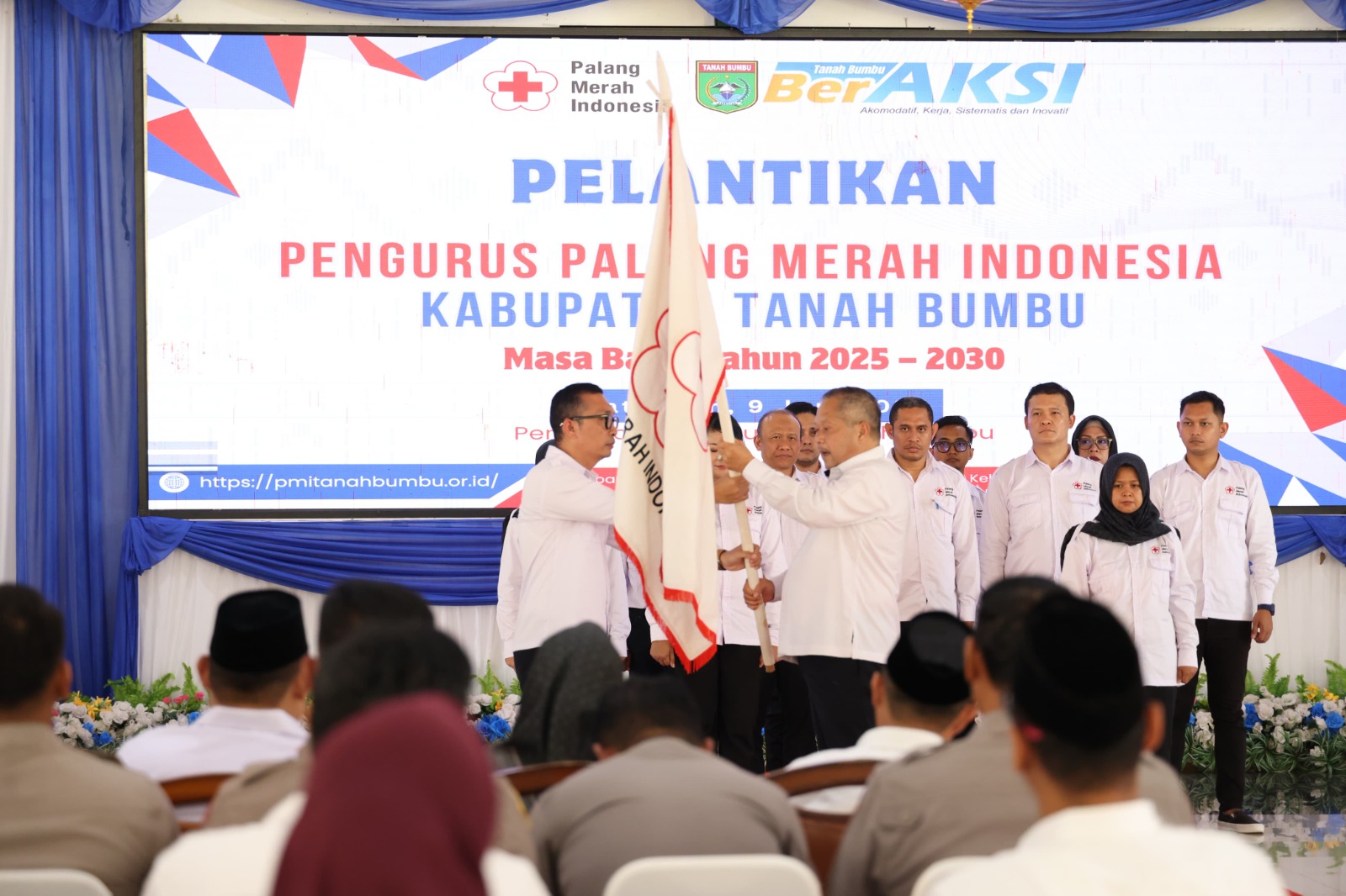 PESISIR MEDIA.COM, BATULICIN – Pelantikan Pengurus Palang Merah Indonesia (PMI) Kabupaten Tanah Bumbu (Tanbu) Masa Bhakti 2025-2030 digelar di Pendopo Kantor Bupati, Batulicin, Senin (9/6/2025).
