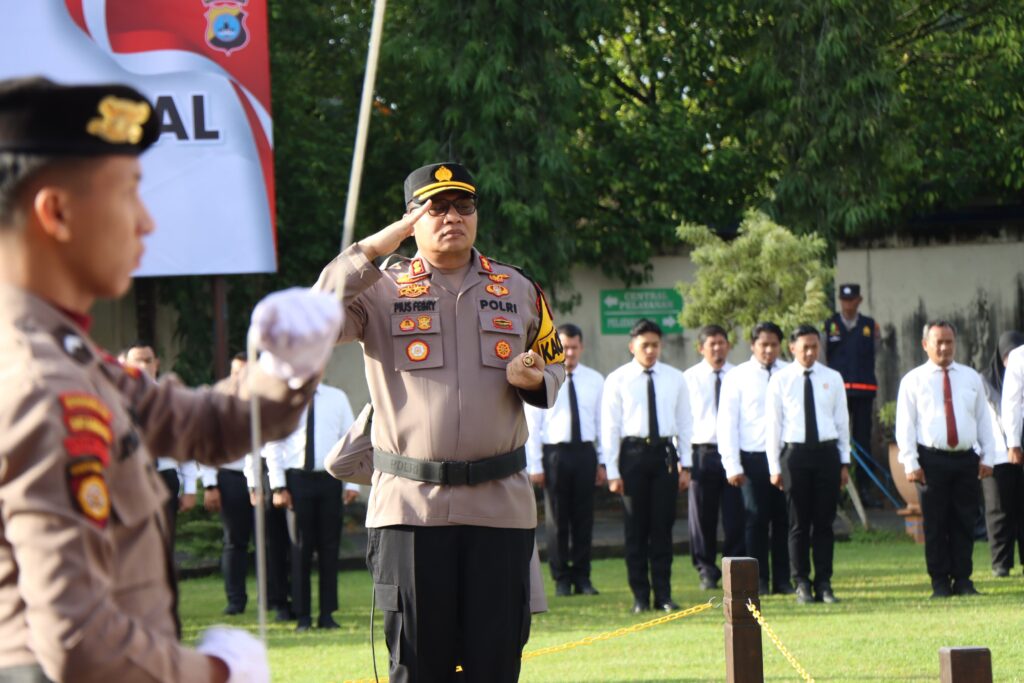 Giat upacara dipimpin langsung oleh Kapolres Banjarbaru AKBP Pius X Febry Aceng Loda dan bertindak sebagai pelaksana dari Sat Samapta Polres Banjarbaru yang diikuti oleh para PJU, para Kapolsek, para Perwira, Bintara serta ASN di lingkungan Polres Banjarbaru.