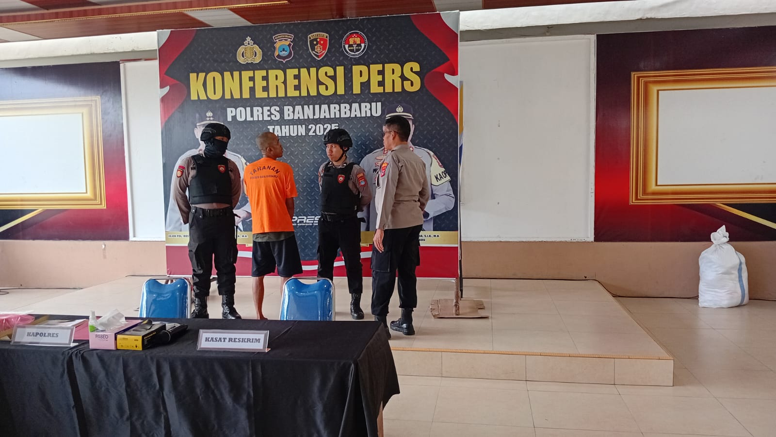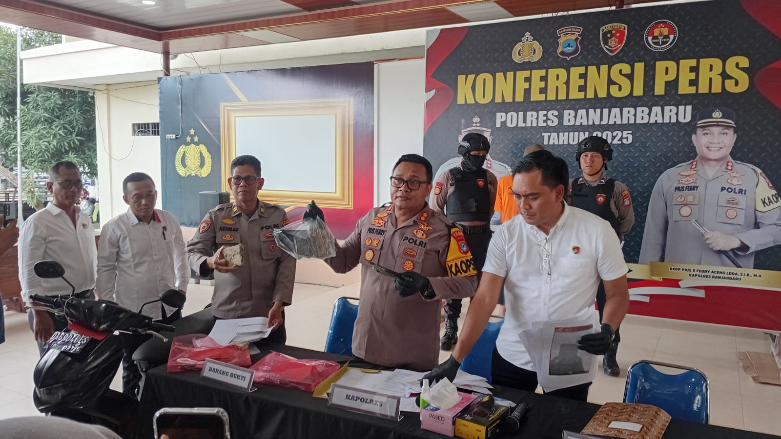 Kapolres Banjarbaru AKBP Pius X Febry Aceng Loda dalam konferensi pers, Senin (17/11/2025), mengatakan bahwa pelaku ditangkap pada Sabtu, 15 November 2025 oleh Unit Resmob Satreskrim Polres Banjarbaru.