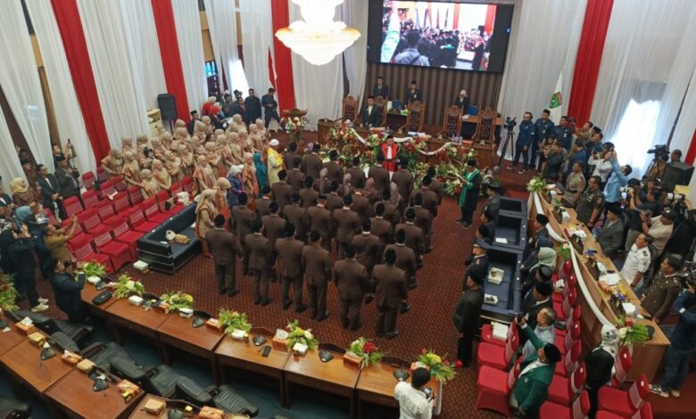 Anggota dewan terpilih hadir dalam kegiatan tersebut di sumpah serta di saksikan berbagai elemen lembaga dan masyarakat yang hadir di aula gedung DPRD tersebut. (Upi)