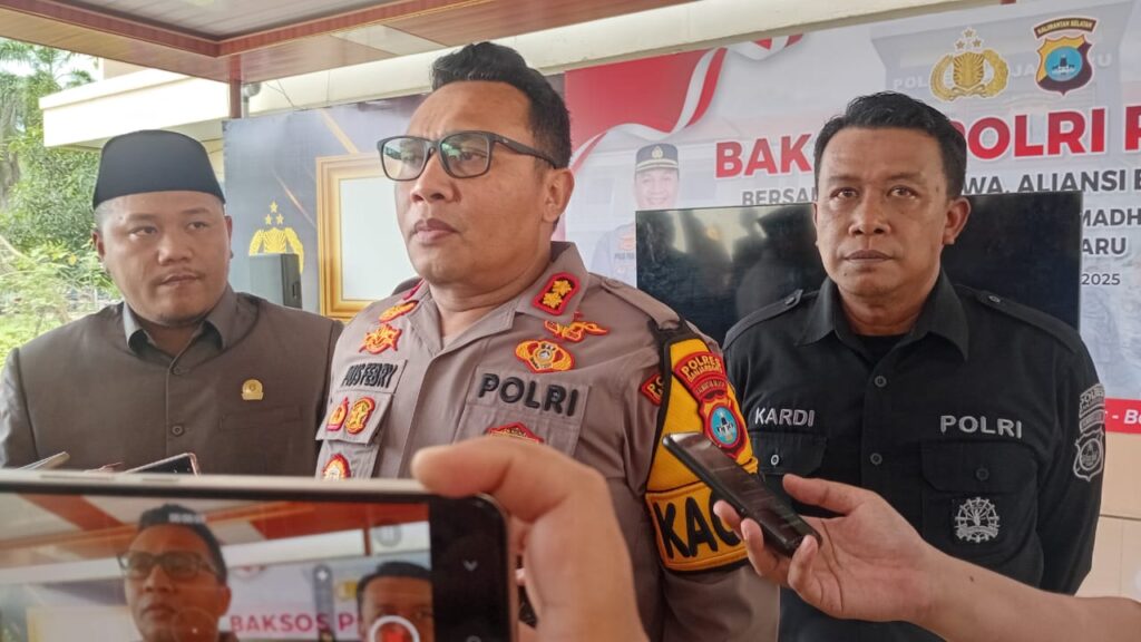 “Menurut kapolres Banjarbaru AKBP Pius Febry X Aceng Loda mengatan kegiatan bakti sosial ini digelar jajaran kepolisian sebagai bentuk sinergitas kebersamaan dengan mahasiswa dan komponen kepemudaan yang selama ini turut andil mendukung kabtibmas dan memelihara persatuan di tengah masyarakat,” ujar kapolres Pius Febry.