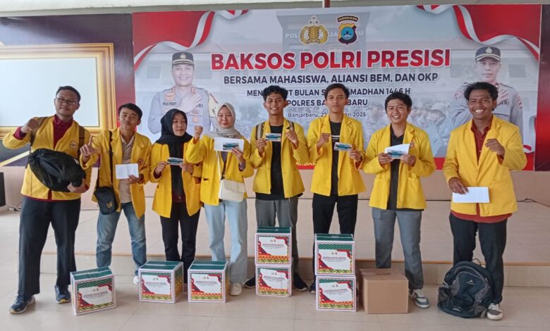 Untuk Polres Banjarbaru di gelar di aula Joglo mapolres Banjarbaru yang melibatkan ratusan mahasiswa yang tergabung dalam aliansi badan eksekutif mahasiswa BEM dan organisasi kepemudaan masyarakat yang diundang menerima bingkisan.