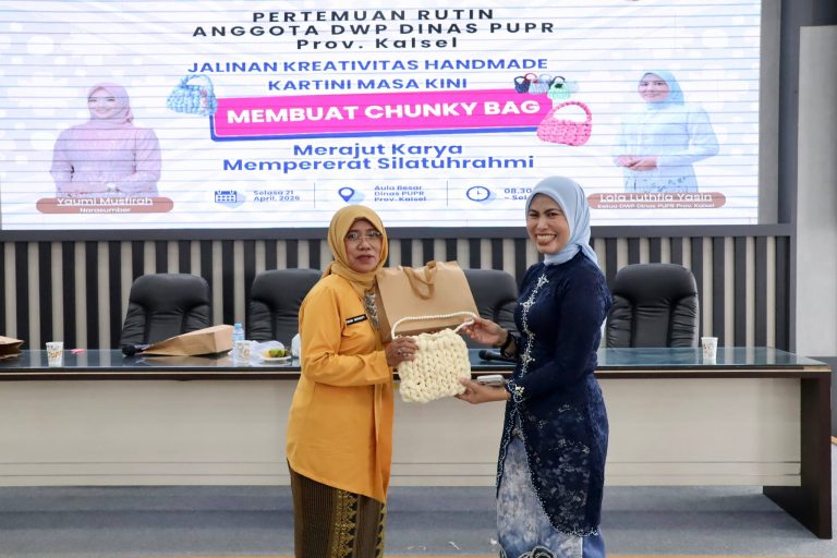 Pesisir media.com, Banjarbaru — Dalam rangka memperingati Hari Kartini 2026, Dharma Wanita Persatuan (DWP) Dinas Pekerjaan Umum dan Penataan Ruang (PUPR) Provinsi Kalimantan Selatan menggelar pertemuan rutin yang dirangkai dengan pelatihan keterampilan membuat kerajinan tangan berupa chunky bag.