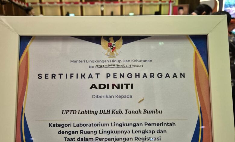 “Dan ini cuma (Laboratorium) Kabupaten Tanah Bumbu dan provinsi Sumatera Selatan yang mendapatkan penghargaan Adi Niti,” imbuhnya.(ewin)