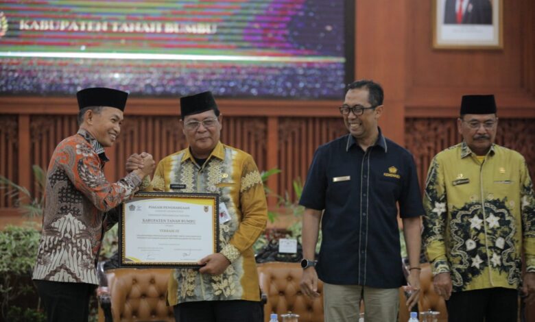 Penghargaan di serahkan Gubernur Kalsel Sahbirin Noor kepada Bupati Tanbu Zairullah Azhar di wakili Sekda Ambo Sakka dalam rangkaian acara penyerahan Daftar Isian Pelaksanaan Anggaran (DIPA) dan Buku Alokasi Transfer ke Daerah (TKD) Tahun Anggaran 2024.