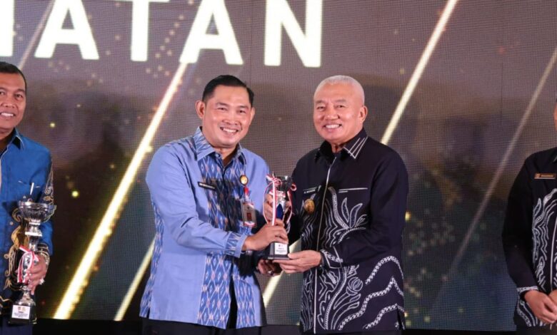 Penghargaan diserahkan langsung Gubernur Kalimantan Selatan H. Muhidin kepada Bupati Tanah Bumbu Andi Rudi Latif melalui Plt. Staf Ahli Bidang Ekonomi, Keuangan, dan Pembangunan, Dwi Dibyo Raharjo.