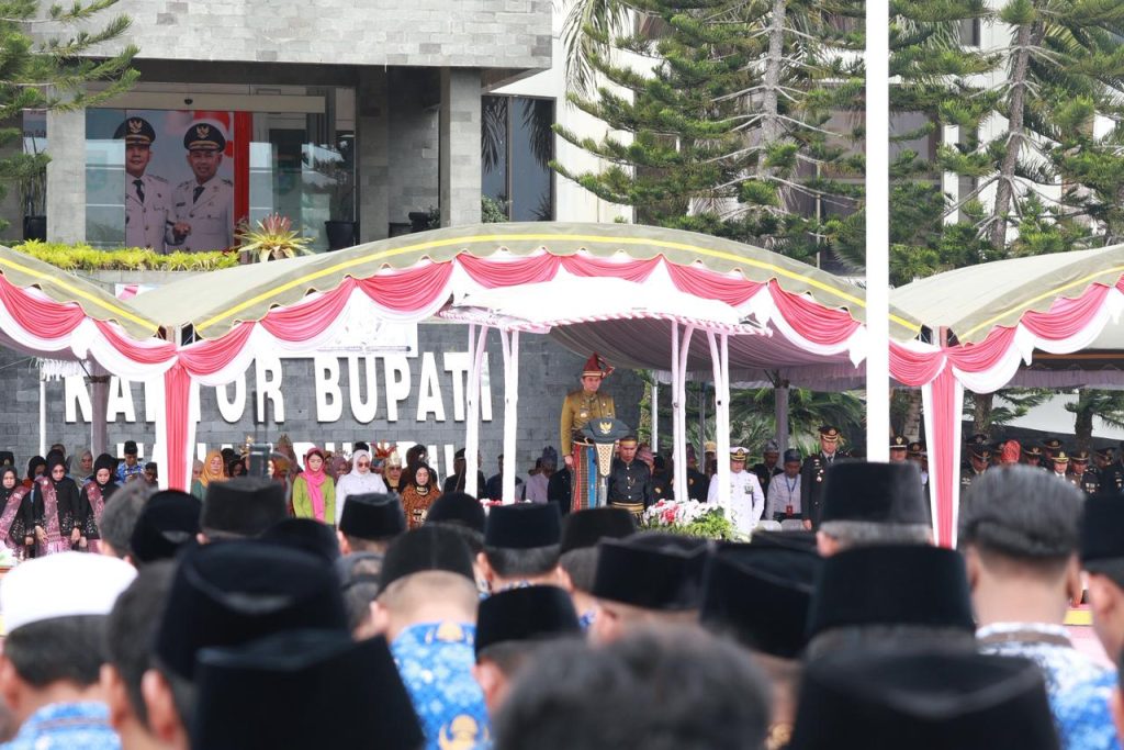 “Hari ini, di bawah langit Indonesia yang merdeka, kita menundukkan kepala penuh hormat mengenang para pahlawan bangsa. Mereka bukan sekadar nama di batu nisan, tetapi cahaya yang menerangi jalan kita hingga hari ini,” ujar Bupati saat membacakan sambutan.
