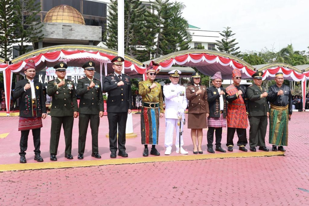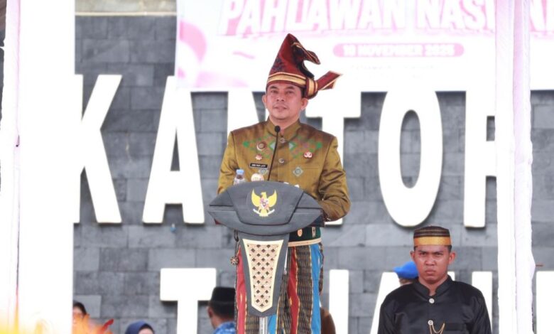 PESISIR MEDIA.COM, BATULICIN – Pemerintah Kabupaten Tanah Bumbu menggelar Upacara memperingati Hari Pahlawan Tahun 2025 di lapangan Kantor Bupati di Batulicin, Senin (10/11/2025). Menariknya, para pejabat dan tamu undangan mengenakan pakaian adat dari berbagai daerah di Indonesia.