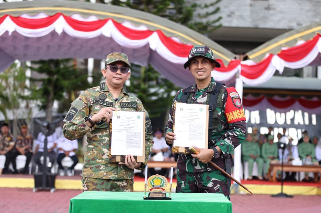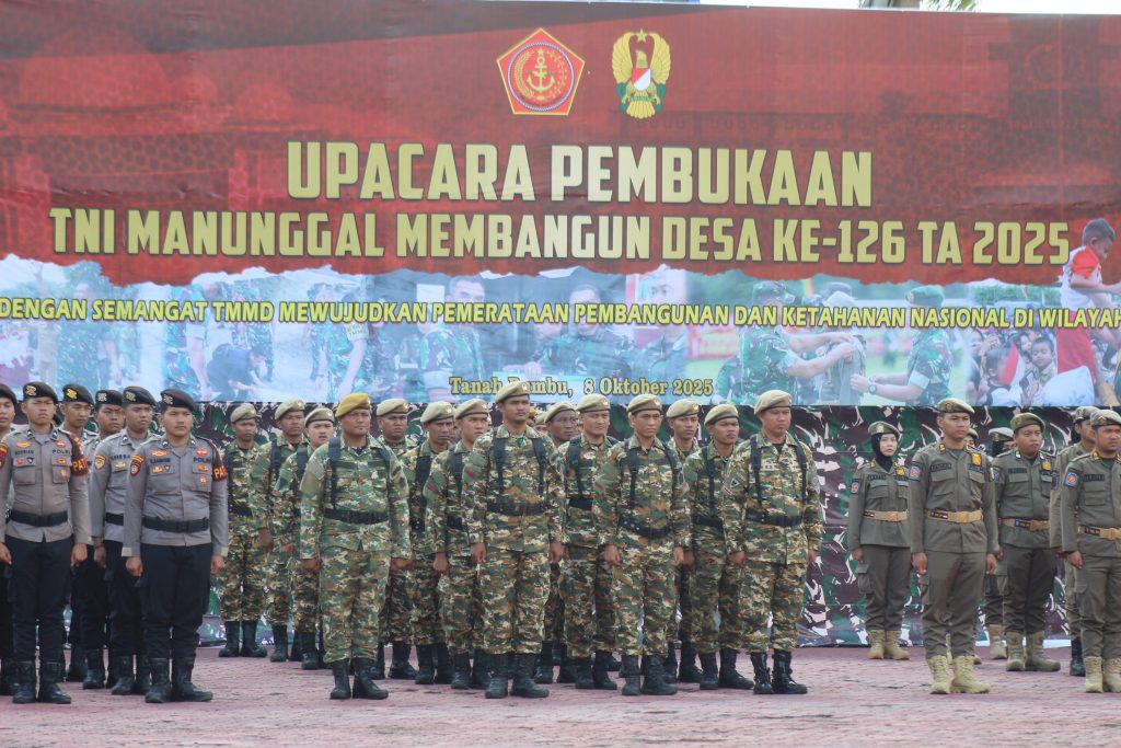 PESISIR MEDIA.COM, BATULICIN – Bupati Andi Rudi Latif bertindak sebagai Inspektur pada Upacara Pembukaan TNI Manunggal Membangun Desa (TMMD) ke-126 Tahun Anggaran 2025 di Kabupaten Tanah Bumbu. Upacara berlangsung di Halaman Kantor Bupati Tanah Bumbu, Batulicin, Rabu (8/10/2025). Mengusung tema “Semangat TMMD Mewujudkan Pemerataan dan Ketahanan Nasional di Wilayah”.
