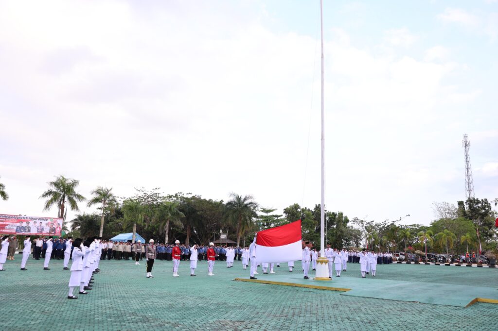 PESISIR MEDIA.COM, BATULICIN – Wakil Bupati (Wabup) Tanah Bumbu Muh Rusli memimpin upacara penurunan bendera merah putih pada peringatan HUT Ke-79 Kemerdekaan Republik Indonesia (RI).